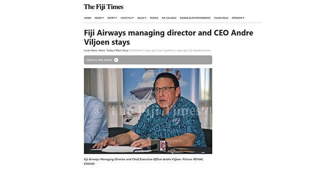 «Viljoen reste aux manettes de Fiji Airways»