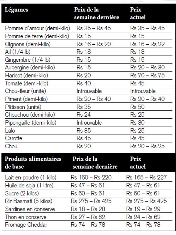 Les augmentations varient, entre Rs 5 et Rs 50. L’aubergine par exemple passe de Rs 15 à Rs 30 le demi-kilo, tandis que la livre de tomates passe de Rs 40 à Rs 45. Toutefois, le lalo affiche une baisse de prix considérable, passant de Rs 35 le demikilo à Rs 25. Les marchands avancent que les récentes pluies ont permis une production plus abondante de ce légume, d’où la baisse de prix.
