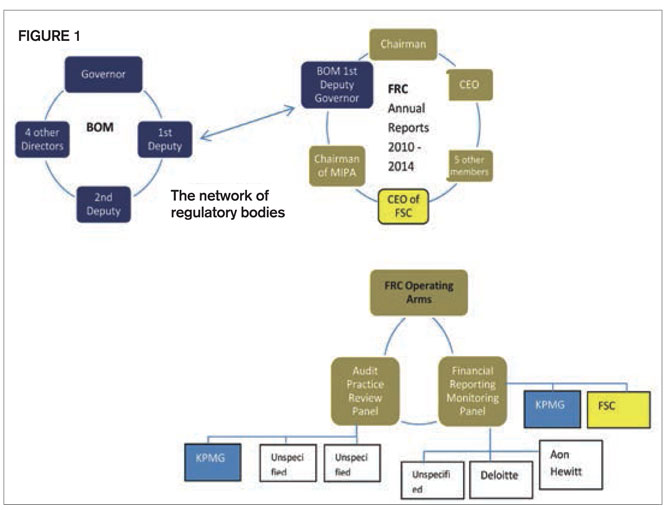 For many years each panel comprised the regulator and auditor of the BAI Group, the FSC and KPMG respectively. Looking at the annual reports of the BoM and the FRC, it can be verified that the same senior partner of KPMG who has been signing the audit reports of the BoM has also been acting as a panel member of the Audit Practice Review Panel of the FRC continuously since 2010! It becomes paramount to know whether the audit files of the BoM and BAI companies were reviewed by the FRC. What were the findings and the measures taken since 2010? We need also to know whether and, if so, how the auditors of the panels were reviewed by the FRC, and the findings since 2008. This post-mortem work would be important for the healing process because these interconnected organisations are at the heart of our financial systems. Figure 1 depicts the system where the institutions and a group of individuals have been operating in a self-perpetuating cozy network. There are three network species. There are individuals who are “hydra board members”, forming part of several such networks and some are “serial board members”. In the FSC and FRC for example, there have been continuous board tenures of nine to ten years. There are also “board hoppers”, as they hop from one to another. The responsibilities and liabilities are obviously proportional to tenure.
