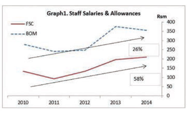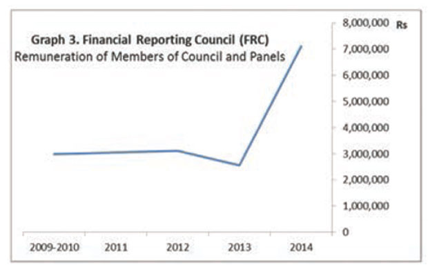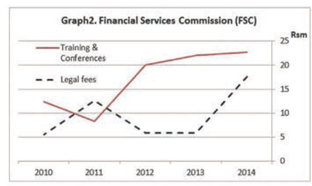 The financial Service Commission (FSC) is the regulator of financial services (e.g. insurance companies, ex BAI). Over the period 2010-2014, the FSC spent close to Rs 11.5 million in Board Fees, Rs 800 million in Salaries and Allowances, Rs 50 million in Legal Fees and Rs 85 million in very effective Training and Conferences, more than half of it overseas, while the Bank of Mauritius (BoM) spent Rs 1.5 billion in Staff Salaries and Rs 95.2 million in Directors’ Remunerations. The Financial Reporting Council (FRC) is governed by the Financial Reporting Act (FRA) and is the principal regulator of the accounting and auditing profession.